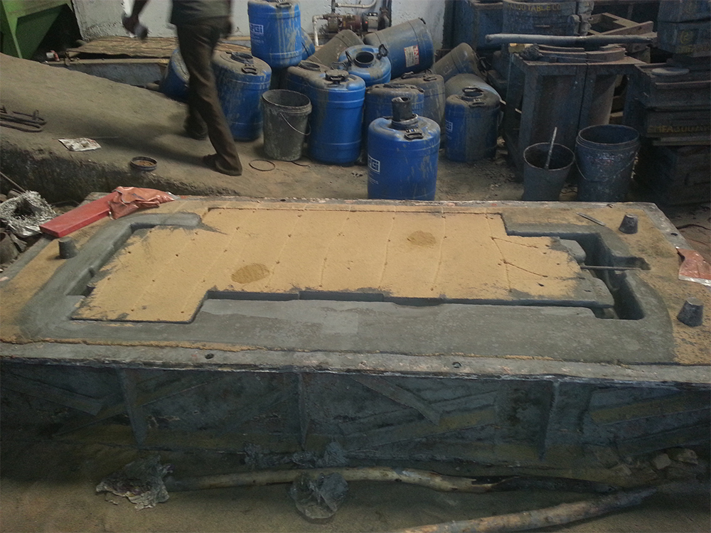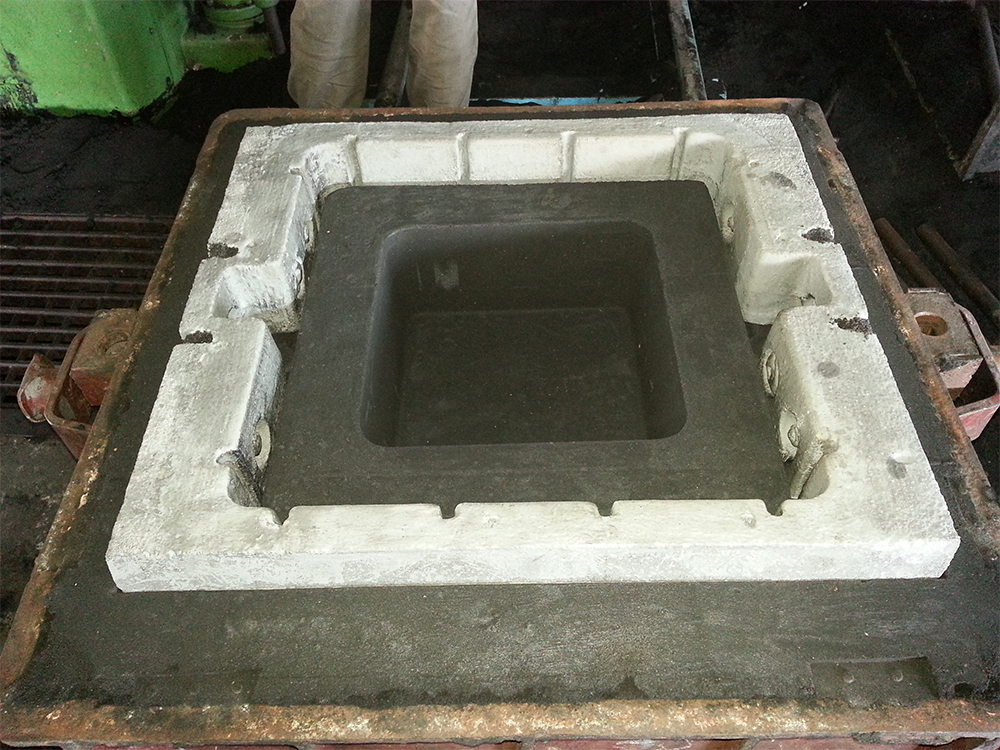 - Hand Moulding both Co2 process and airset process with its variable mould size can cater for much larger castings and also suits the low volume items which repeat rarely if ever. Pouring weight can be upto 1500 Kgs.